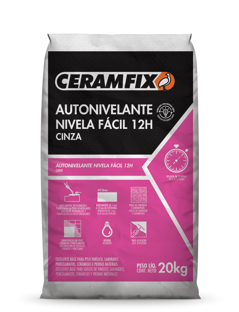 O Autonivelante Nivela Fácil 12h Ceramfix é uma argamassa mineral autonivelante de liberação rápida, conhecida por seu acabamento liso, alta resistência e aderência. Especialmente indicada para o revestimento de pisos irregulares, é a escolha ideal para nivelar superfícies antes da aplicação de pisos vinílicos, cerâmicos, porcelanatos e pedras naturais.